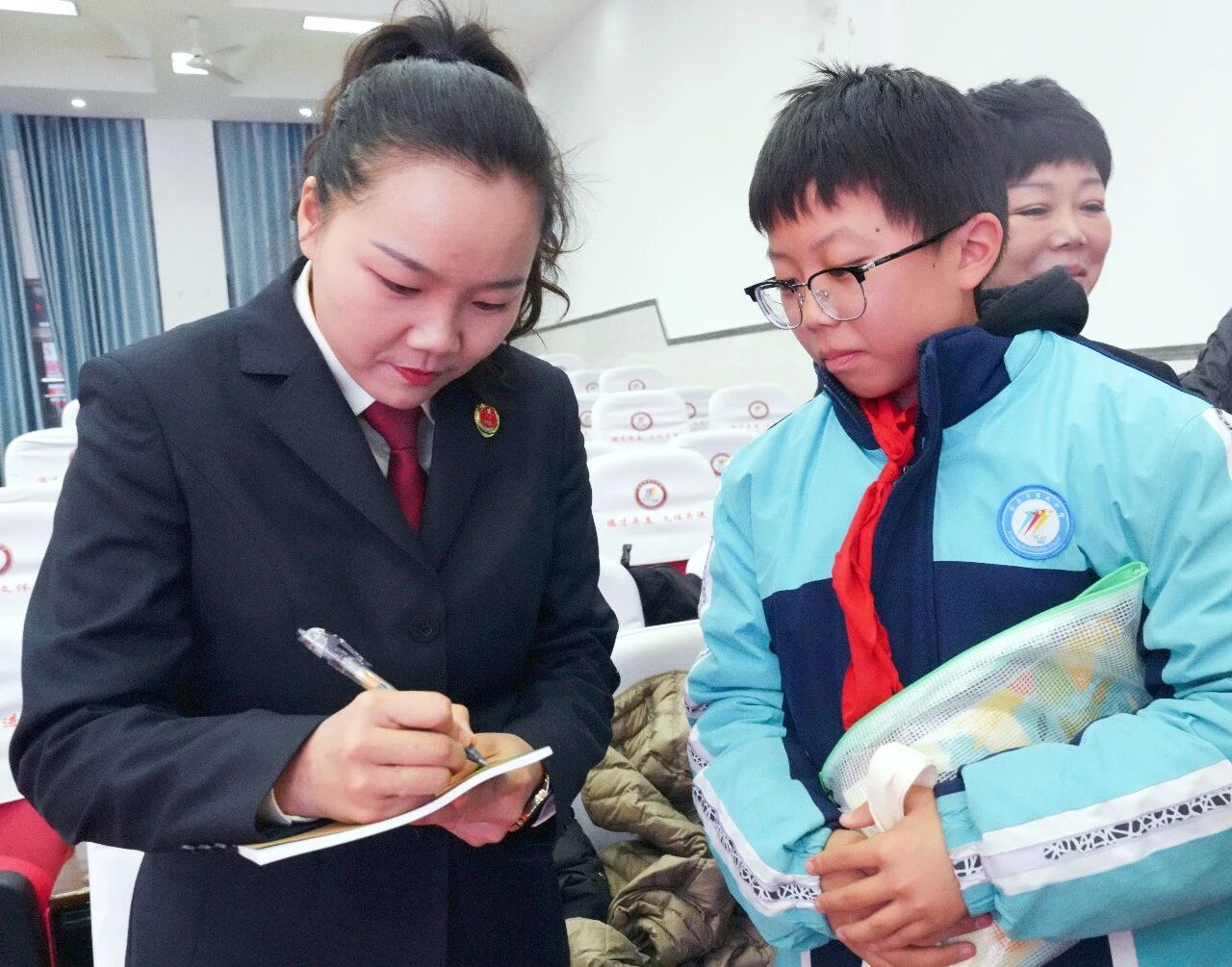 2025年12月4日,湖北省宜昌市检察院在辖区一中学结束法治宣讲后,学生主动要求检察官为自己留下成长寄语。