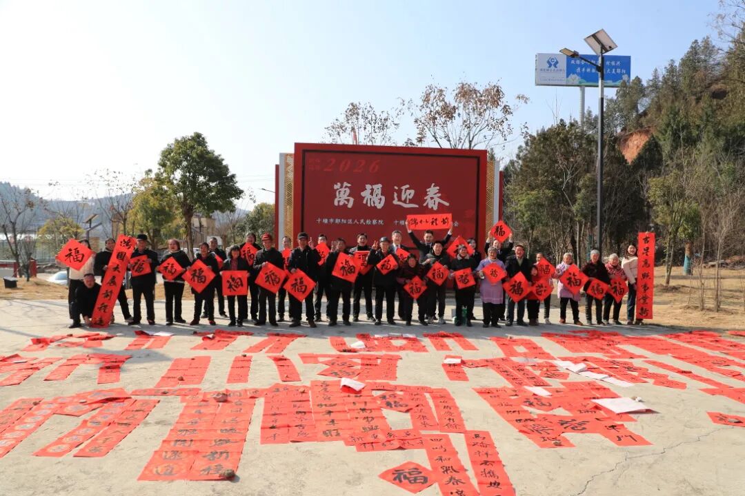 “检察官同志,帮我写一副‘产业兴旺添福祉,乡村振兴展宏图’的春联!”“我要这幅‘法治护航千村美,墨香浸润百姓安’太贴合咱村的变化了!”2月5日上午,农历腊月十八的十堰市郧阳区杨溪铺镇罗沟村,新春气息扑面而来。村法治文化广场上村民们围着临时搭建的书桌争先请书法家为自己家写春联,红红的春联在阳光下格外鲜亮,浓浓的年味与期盼在欢声笑语中蔓延。