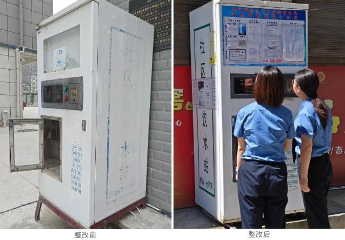 一个多月后,39台直饮水机全部完成整改:机身焕然一新,营业执照、食品经营许可证、最新水质检测报告等整齐张贴在设备醒目位置,饮水机周边环境干净卫生。