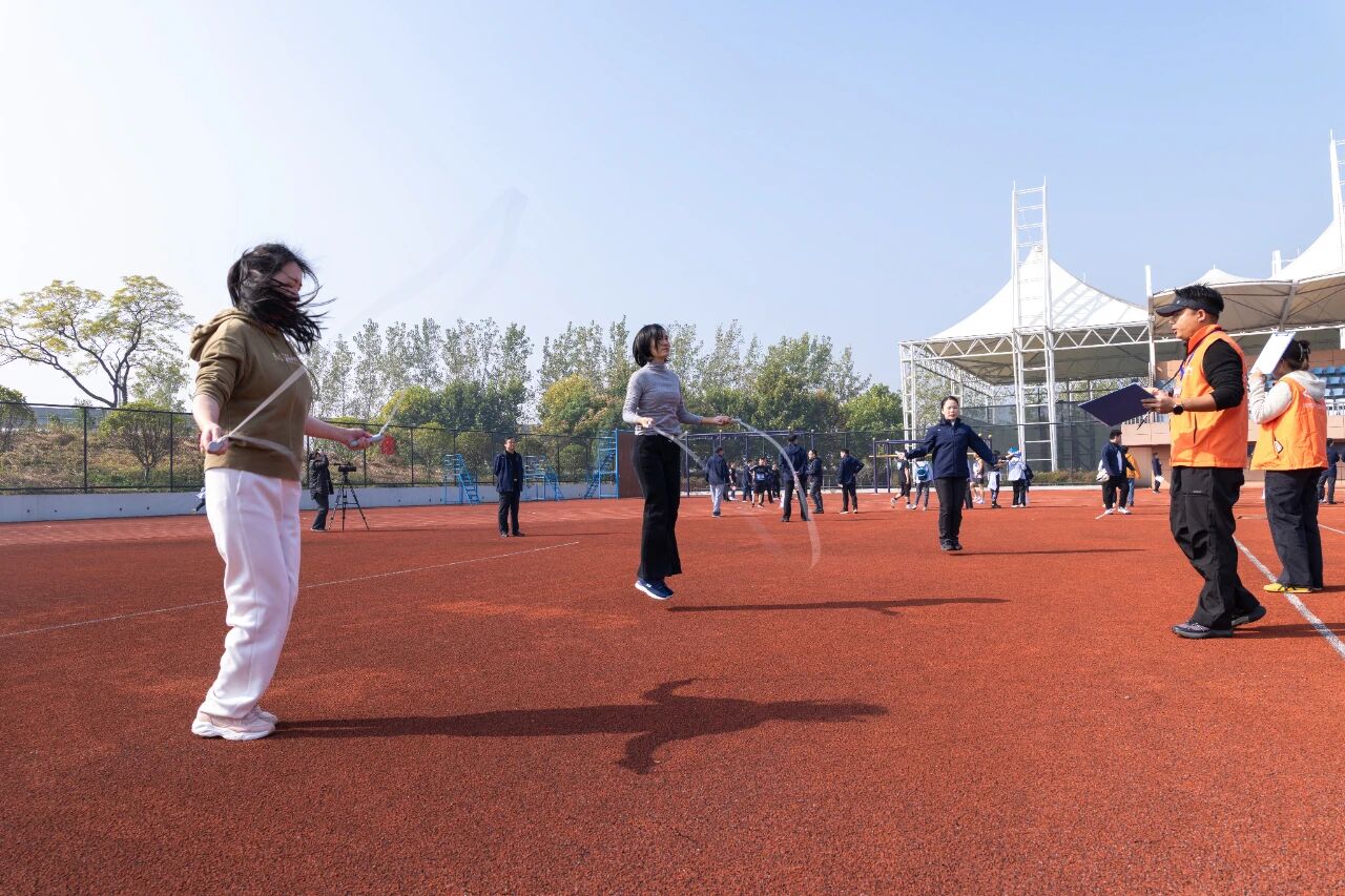 “只要绳子不断,我就能一直跳!”女子跳绳比赛的运动员边跳边跟队友聊着天。同步进行的男子跳绳组的队员们手中的绳子在脚下翻飞成银色的光轮,大家连声叫好。