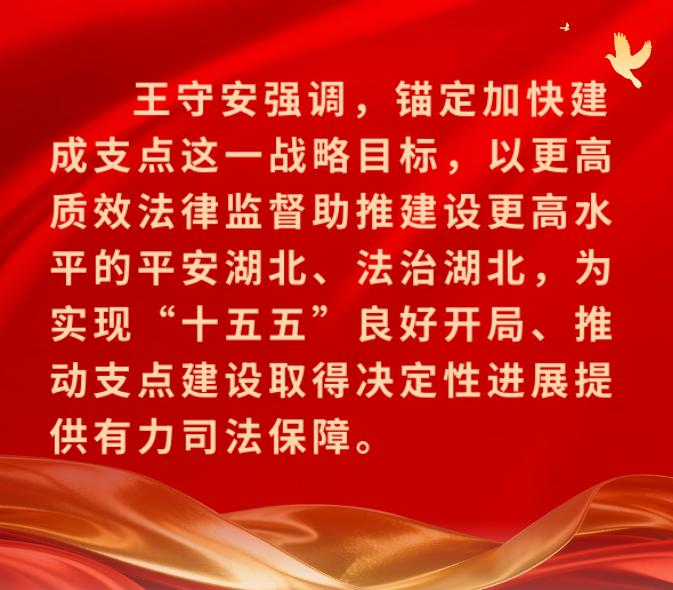 会议强调,2026年是中国共产党成立105周年,是“十五五”开局之年和支点建设加力奋进之年,也是党绝对领导下的人民检察制度创立95周年和《中共中央关于加强新时代检察机关法律监督工作的意见》出台5周年,做好今年检察工作至关重要。全省检察机关要坚持以习近平新时代中国特色社会主义思想为指导,锚定加快建成支点这一战略目标,始终坚持党的绝对领导这一最高原则,把握大局为重、民生为大这一使命宗旨,坚持法律监督主责主业、高质效办案本职本源这一鲜明导向,抓好队伍建设这一基础工程,更加注重法治与改革、发展、稳定相协同,更加注重保障和促进社会公平正义,树立和践行正确政绩观,更好为大局服务、为人民司法、为法治担当,以更高质效法律监督助推建设更高水平的平安湖北、法治湖北,为实现“十五五”良好开局、推动支点建设取得决定性进展提供有力司法保障。